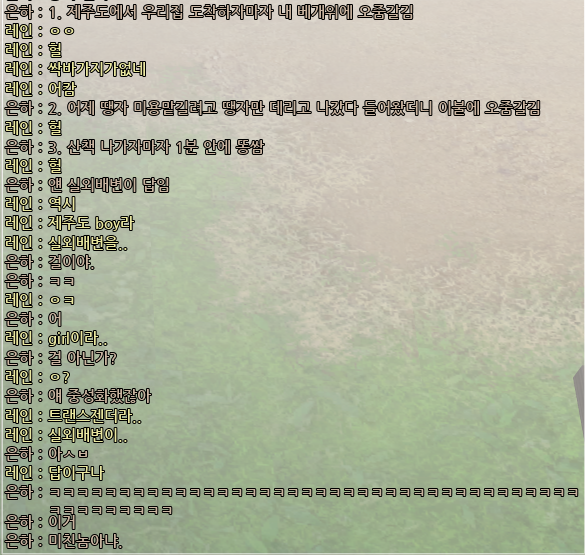 허늘이 내 캐릭터 죽여놓고 자나랑 둘이 정화돌고있었음